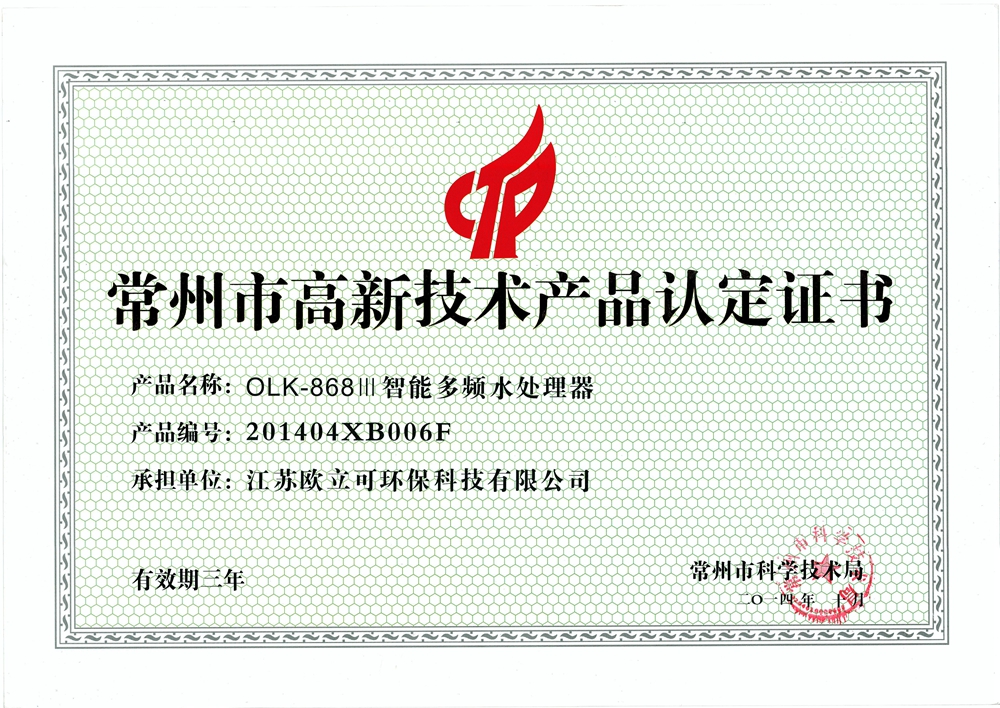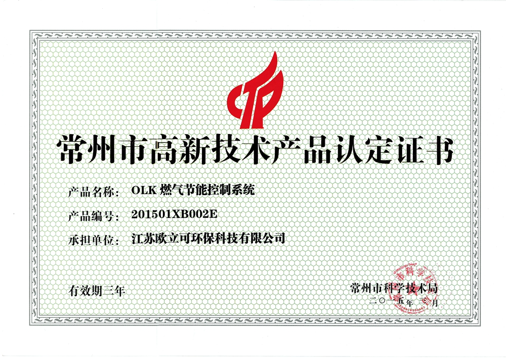 熱烈祝賀江蘇歐立可環保科技有限公司獲得常州市高新技術產品認定!