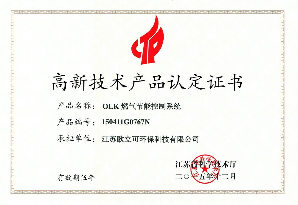 熱烈祝賀江蘇歐立可環保科技有限公司獲得江蘇省高新技術產品認定證書!