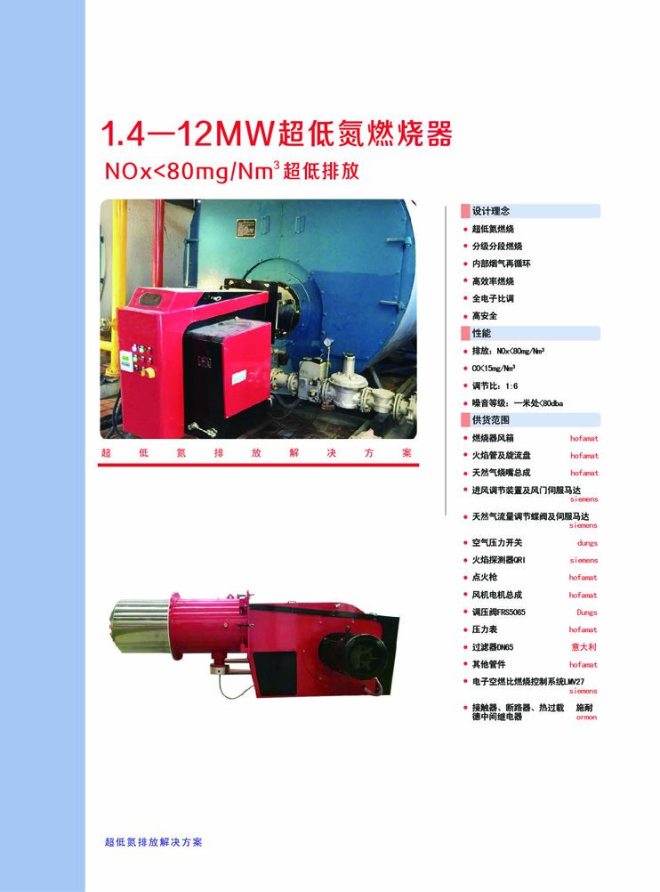 低氮燃燒器氮氧化物排放<80mg/Nm3