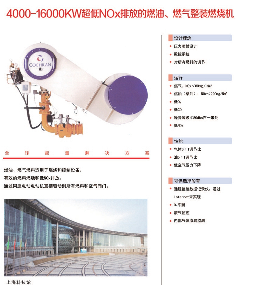4000-16000KW超低NOx排放的燃油、燃?xì)庹b燃燒機(jī)(NOx<80mg/Nm3)