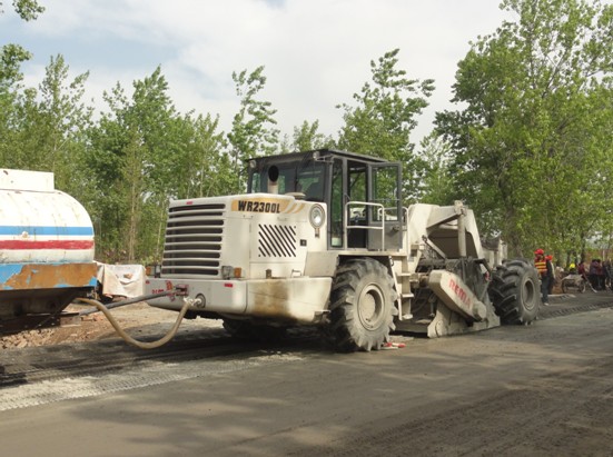 2012年3月,我公司生產(chǎn)的一臺(tái)600馬力WR2300L路面冷再生機(jī)在河南**葛市S325省道進(jìn)行路面冷再生施工,該路段為省道,面層為6-7公分的瀝青混凝土,穩(wěn)定層為水泥碎石穩(wěn)定層。業(yè)主對(duì)該路段的大修要求是用銑刨機(jī)將瀝青面層銑刨清運(yùn),然后用冷再生機(jī)對(duì)下面的水泥穩(wěn)定土基層進(jìn)行就地冷再生施工。在精心組織施工下,一臺(tái)我公司生產(chǎn)的WR2300L路面冷再生施工質(zhì)量穩(wěn)定,深獲業(yè)主好評(píng),綜合評(píng)價(jià)勝過另一標(biāo)段的國(guó)外同類機(jī)型,在施工后期,業(yè)主只留一臺(tái)我公司的WR2300L冷再生機(jī)施工作業(yè),并承諾在以后的工程中繼續(xù)使用我公司生產(chǎn)的WR2300L路面冷生機(jī)。在實(shí)際的路面冷再生施工中獲得國(guó)內(nèi)公路施工單位的如此贊譽(yù),使我公司廣大員工深受鼓舞,這是我公司多年勤奮努力的結(jié)果,追趕國(guó)外先進(jìn)公司路面冷再生機(jī)的性能,這是我公司多年的目標(biāo),現(xiàn)在這一目標(biāo)已部分實(shí)現(xiàn),國(guó)外先進(jìn)機(jī)器的性能并不是國(guó)內(nèi)生產(chǎn)企業(yè)做不到的,目前我公司生產(chǎn)的600馬力冷再生機(jī),在機(jī)器的綜合施工效率、噴水計(jì)量精度、銑刨鼓的耐磨性上均已處于國(guó)內(nèi)領(lǐng)先水平。我們深信辛勤的努力可以獲得進(jìn)步的回報(bào),我們也將繼續(xù)努力,開發(fā)更先進(jìn)的機(jī)型,努力回報(bào)用戶,回報(bào)社會(huì)。