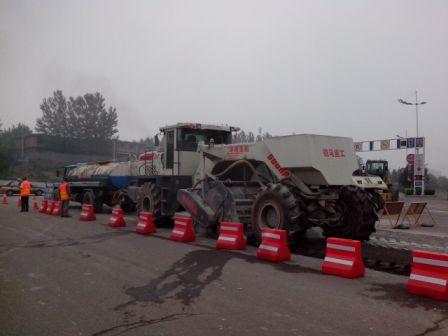 國道G108臨汾段今年開始冷再生大修施工,該路段為公路干線,路基及路面強(qiáng)度很高,其中部分路段,比如靠近收費站的路段,經(jīng)過多次維修,采用了改性瀝青鋪設(shè)面層,路面強(qiáng)度很高,即使是進(jìn)口機(jī)械施工也不輕松,導(dǎo)致機(jī)器工作速度慢,刀具磨損損耗量明顯增大等。該路段共有六個標(biāo)段,施工的主要設(shè)備冷再生機(jī)以進(jìn)口品牌為主。由于工期緊張,先后有兩個標(biāo)段調(diào)用了我公司生產(chǎn)的600馬力WR2300E,WR2300L冷再生機(jī)。我公司冷再生機(jī)面對如此高強(qiáng)度路面冷再生,機(jī)器展示了國產(chǎn)機(jī)械的優(yōu)異性能,通過了考驗,贏得了施工方的認(rèn)可。參于施工的兩臺600馬力冷再生機(jī),均安裝了我公司自行生產(chǎn)的可拆卸刀庫重型轉(zhuǎn)子,很好地體現(xiàn)了可拆卸刀庫重型轉(zhuǎn)子在高強(qiáng)度冷再生施工中的適應(yīng)性。