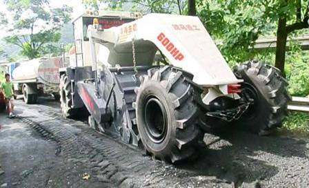 懷化市2013年的兩段冷再生工程分別是G320國道洪江段和S222省道靖州段,兩段工程總大修里程超過60公里。在項目調(diào)研階段,我公司會同河南隆裕工程公司經(jīng)實地考察,認(rèn)為兩段路雖屬干線公路,但路基的損壞較嚴(yán)重,路基強度屬中等強度,冷再生機施工強度不高,鑒于兩段路均屬丘陵山地,坡道多,彎道多,施工管理難度較大,需要加強現(xiàn)場管理。