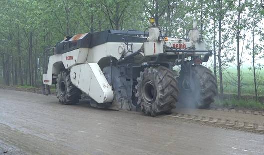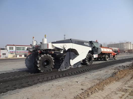 我公司去年研發(fā)成功的全電控機械傳動路面冷再生機RZ2300,從今年3月出廠以來,先后轉戰(zhàn)3個工地,中間雖小有波折,但經我公司技術人員的調整,隨著機手逐漸熟悉機器的性能,孰練掌握機器的操作技巧,機器的工作速度越來越快。今天,從項城S102省道工地傳來喜訊,水穩(wěn)路基冷再生施工,機器老板親自指揮機手操作機器,讓機手逐步加快機器的工作速度,機器老板高興地打來電話說,機器工作速度出乎意料地快,驅動輪胎轉一圈只要24秒,計算結果是一分鐘可以跑12米,這說明我們的機械傳動冷再生機的性能發(fā)揮出來了,機器的性能達到了設計要求,正如用戶所說,我們的新產品大有前途,可以與國際產品媲美。
