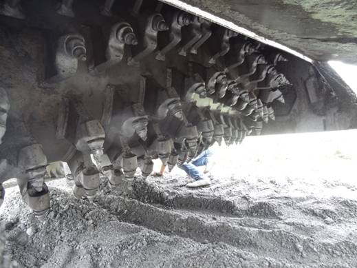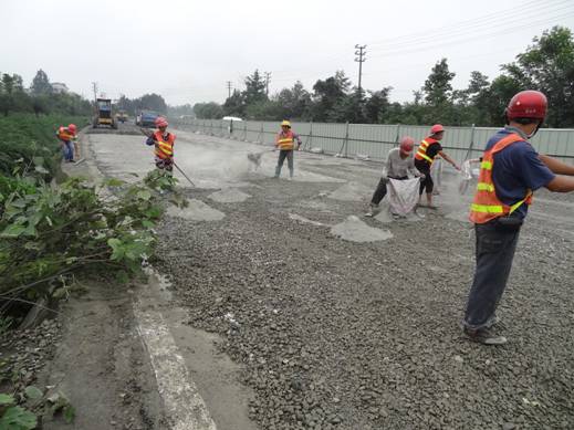 2014年6月,我公司冷再生機(jī)**進(jìn)入四川施工。先進(jìn)入四川的是一臺(tái)600馬力WR2300L冷再生機(jī),由河南隆裕工程公司于2011年向我公司購買,已工作了近四年,機(jī)器狀態(tài)仍然很好。冷再生工程為郫縣唐太路道路改造工程,主要路基的大修采用冷再生工藝。唐太路為水穩(wěn)路基結(jié)構(gòu),與華東等大部分地區(qū)不同的是路基下有大量的鵝卵石,這會(huì)對銑刨轉(zhuǎn)子造成很大的磨損,如果機(jī)器不是裝備了可折卸刀庫重型轉(zhuǎn)子,這個(gè)工程是不可能做下去的,刀具的損耗很大,齒套也有較大的磨損。施工隊(duì)伍在高經(jīng)理的帶領(lǐng)下,無論是施工速度還是施工質(zhì)量均獲得管理方的好評,打消了承包方最初對國產(chǎn)設(shè)備的疑慮。