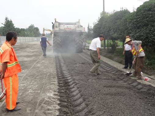 鄰近的沙西線也在做冷再生工程,由于是同一承包工程公司也中標(biāo)了其中一段路,這套冷再生機(jī)組被調(diào)去做了一段試驗(yàn)段,兩天干了7560平方米,這個(gè)屬于正常的施工速度。相鄰標(biāo)段有一臺(tái)進(jìn)口的WR2000,一天只能干1800-2000平方,無論是業(yè)主、施工管理方還有其它配套機(jī)械都對這個(gè)工作速度不滿意,甚至連撒水泥的民工意見都大得很,因?yàn)樗麄兊墓ゅX也是按平方結(jié)算的,想多干而不可得。項(xiàng)目部協(xié)調(diào)我們這臺(tái)WR2300L去打了一段,實(shí)際驗(yàn)證速度確實(shí)更快。項(xiàng)目部這才確定不能盲目推崇進(jìn)口機(jī)器,國產(chǎn)機(jī)器也是可能勝過進(jìn)口機(jī)器的,很快,項(xiàng)目部與用戶簽定了合同,退掉WR2000,租用我們的機(jī)器,我們推薦的是比WR2300L速度更快的機(jī)械傳動(dòng)RZ2300冷再生機(jī)。