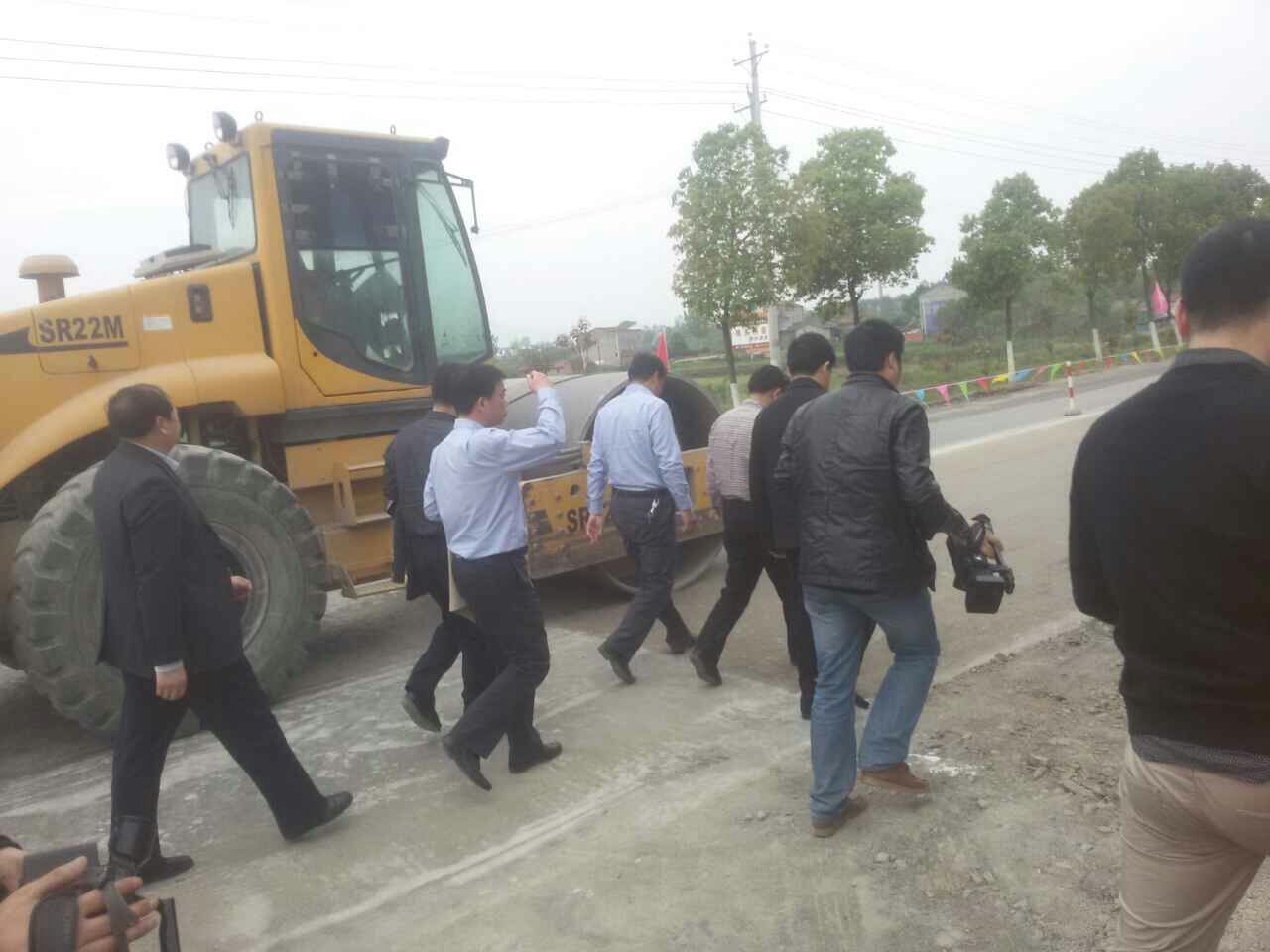 圖為荊門市委書記,湖北省公路局局長,京山縣公路局局長現場觀摩指導工作。