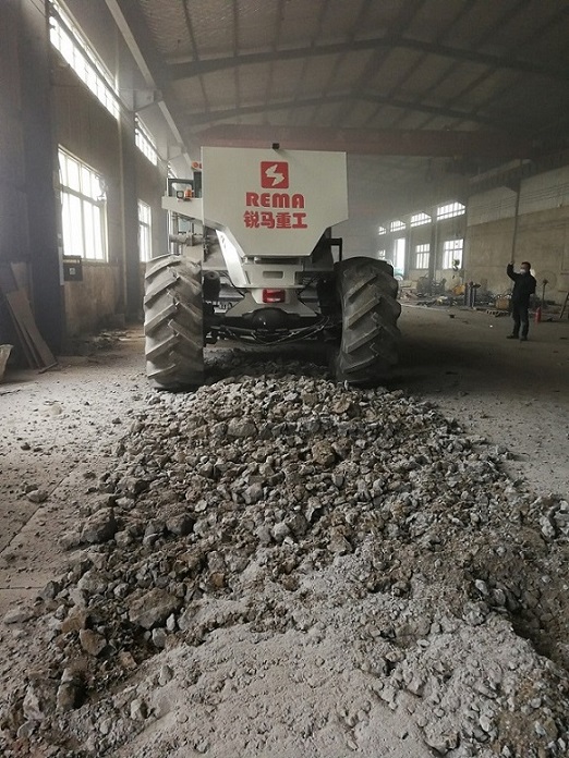 2017年歲末,我路拌公司研發(fā)的新產(chǎn)品RS600水泥路面破碎機(jī)樣機(jī)下線,并成功完成了水泥路面的破碎試驗(yàn),試驗(yàn)的結(jié)果讓開(kāi)發(fā)人員驚喜,實(shí)際工作效果超出預(yù)期,報(bào)廢的車(chē)間水泥路面強(qiáng)度雖然高,但破碎機(jī)工作穩(wěn)定,堅(jiān)硬的水泥路面輕松破碎。